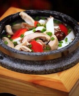 4、原湯加入豬肚、栗子、山藥片、紅椒、加鹽、胡椒調味略煮即可出鍋
