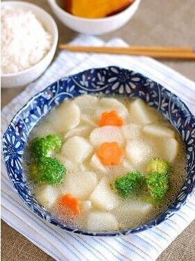 山藥(我用的水山藥,就是脆的那種,喜歡面的口感,可以改用綿山藥),雞湯,胡蘿卜,西蘭花