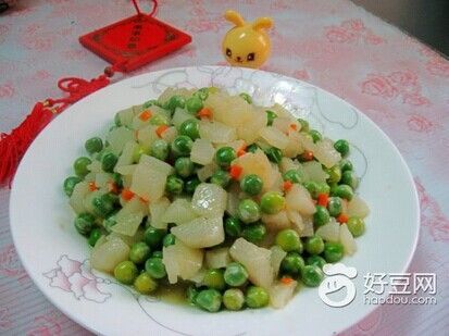 豌豆炒白山藥做法介紹 豌豆炒山藥,綠綠的豌豆,白白的山藥,那是白玉配上了綠珍珠啊,很漂亮的。做起來也簡單,還非常好吃呢