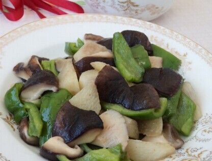 香菇白山藥炒青椒做法介紹 這道菜用香菇、山藥、青椒作食材,橄欖油炒制。看著色彩有些暗,但得益于三種食材都是藥食作用兼而有之的利好食材,這道菜的營養很豐富,功效很多,可以補腎、防癌、增強免疫力等等